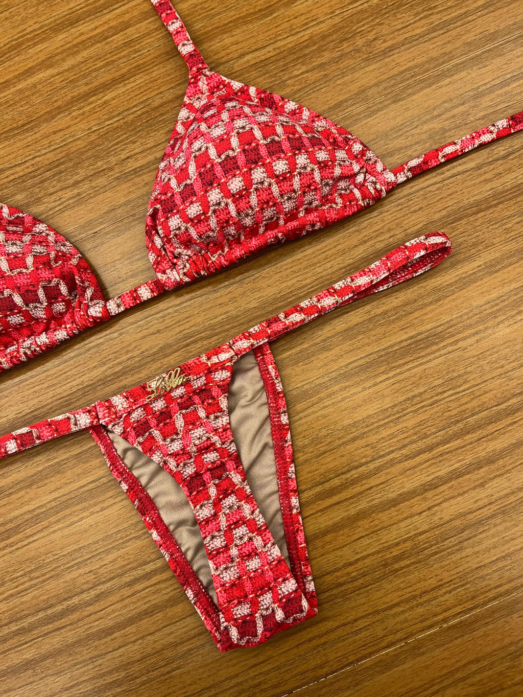 Biquíni Fita Frente Menor Fio Dental Tricô Vermelho